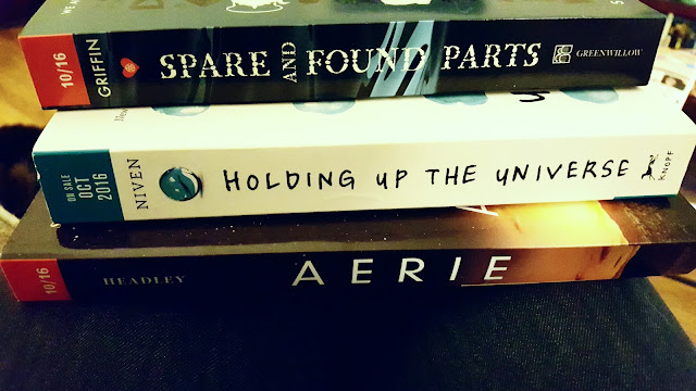 Labels: aerie, Amber Reads Her Shelves, holding up the universe, jennifer niven, Maria Dahvana Headley, sarah maria griffin, spare and found parts